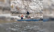Из-за сильного ветра байдарку с двумя людьми прибило к скалистому берегу Волги около Молодецкого кургана