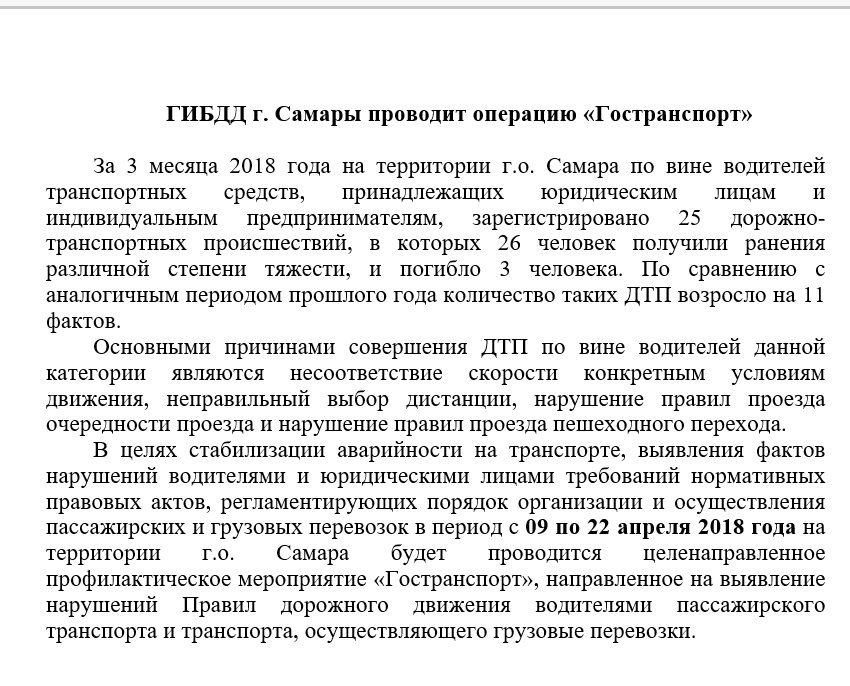 В целях улучшение качества и безопасности движения транспорта в Самаре за счет оптимизации систем управления движения, дорожных знаков, разметки на основе обратной связи с пользователями – водителями и пассажирами г.о. Самара на сайте информационного агенстства был создан специальный раздел, в который были размещены десятки статей по теме проекта.