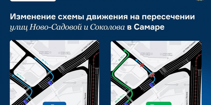 С 15 января 2026 года левый поворот на ул Соколова с ул Ново-Садовая запрещен. Движение только прямо.