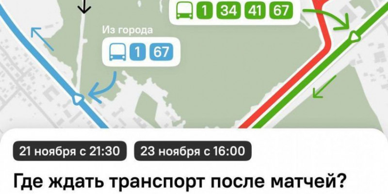 Отметим, что 23 ноября перед матчем автобусы маршрутов №№ 1 и 67 будут заезжать непосредственно на территорию стадиона.