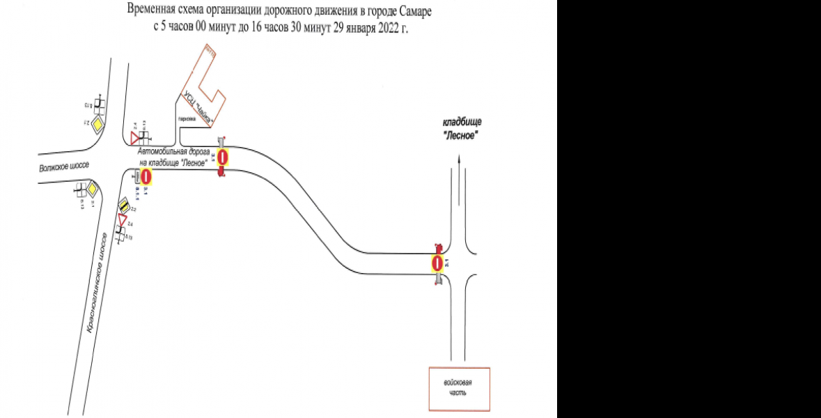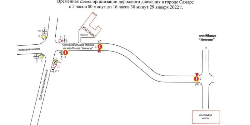 В целях обеспечения безопасности дорожного движения в связи с проведением спортивного мероприятия «Самарский лыжный марафон «Сокольи Горы» с 05:00 до 16:30 29 января 2022 года на территории г. о. Самара будет ограничено движение транспорта по автомобильной дороге на кладбище «Лесное» – от лыжной базы ГАУ Самарской области «Учебно-спортивный центр «Чайка» до поворота на кладбище «Лесное».