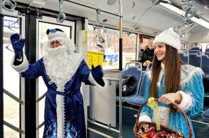 26 декабря в Самаре по маршруту автобуса № 67 запущен «Новогодний маршрут» с Дедом Морозом и Снегурочкой. Они создают пассажирам праздничное настроение и вручают подарки.