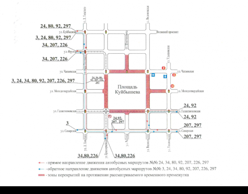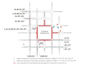 В указанное время общественный транспорт – автобусы маршрутов №№ 3, 24, 34, 80, 92, 207, 226, 297 – будут следовать по скорректированной схеме.