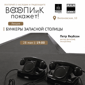 28 мая в 19.00 в Доме архитектора пройдет лекция «Бункеры запасной столицы» (12+). Ее прочитает Петр Якубсон – диггер, фотограф, экскурсовод, член регионального отделения Всероссийского общества охраны памятников истории и культуры. Вход свободный.
