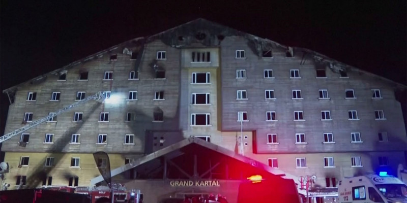 Во время ночного пожара, случившегося 21 января в отеле турецкого горнолыжного курорта Карталкая, погибли 79. Здания отеля Grand Kartal решено снести вследствие серьезных повреждений.