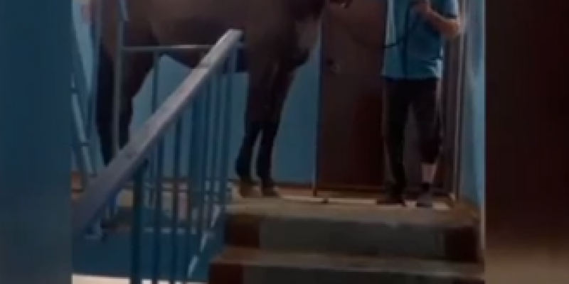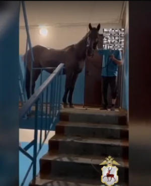 Полицейские установили, что Дмитрий встретил коня на улице и завел в подъезд, чтобы тот не замерз и не попал под машину.