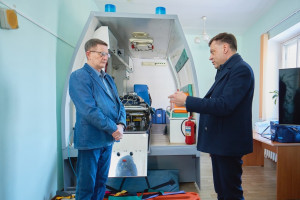 В ходе визита министр пообщался с коллективами, осмотрел гараж, где размещается специализированный автотранспорт, ознакомился с условиями работы сотрудников - посетил комнаты отдыха, приема пищи, спортзал, а также проверил наличие лекарственных препаратов в укладке бригад для оказания экстренной помощи.