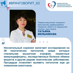 Об этом рассказала главный внештатный специалист министерства здравоохранения Самарской области по медицинской генетике, заведующая медико-генетической консультацией Самарской областной клинической больницы имени В.Д. Середавина, врач - генетик Татьяна Мельникова:
