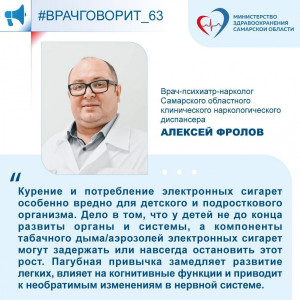 "Курение и потребление электронных сигарет особенно вредно для детского и подросткового организма. Дело в том, что у детей не до конца развиты органы и системы, а компоненты табачного дыма/аэрозолей электронных сигарет могут задержать или навсегда остановить этот рост. Пагубная привычка замедляет развитие легких, влияет на когнитивные функции и приводит к необратимым изменениям в нервной системе.