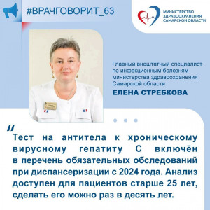 «В Самарской области создана система оказания медицинской помощи пациентам с хроническим гепатитом С. При подозрении на заболевание специалисты направляют пациента к врачу-инфекционисту в поликлинику по месту прикрепления. Пациентам с предварительным диагнозом назначается и проводится дообследование для установления клинического диагноза.