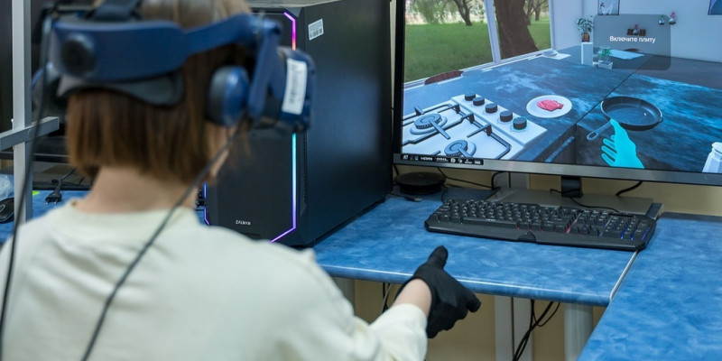 Во время занятий пациент погружен в виртуальную среду, которая имитирует знакомые жизненные ситуации: кухню, ванную комнату, гостиную. Он видит перед собой понятные и логичные задачи — взять предмет, переместить его, выполнить бытовое действие. Сценарии и уровни сложности автоматически подбираются под функциональные возможности пациента. Движения рук считываются бесконтактно с помощью оптических трекеров, а взаимодействие с виртуальными объектами подкрепляется тактильными ощущениями через специальную сенсорную перчатку. Благодаря этому у пациента возникает ощущение реального контакта с предметами, что значительно усиливает вовлеченность и естественность процесса.