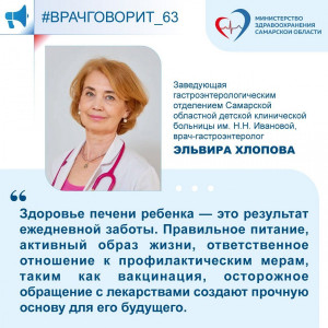 Заведующая гастроэнтерологическим отделением Самарской областной детской клинической больницы им. Н.Н. Ивановой, врач-гастроэнтеролог Эльвира Хлопова: