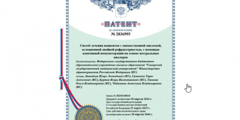 Самарский государственный медицинский университет Минздрава России (СамГМУ) получил патент на методику лечения онкологических пациентов со злокачественными заболеваниями системы крови с использованием натуральных клеток-киллеров (NK-терапия).
