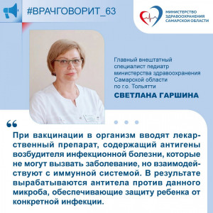 Главный внештатный педиатр министерства здравоохранения Самарской области по г.о. Тольятти, главный врач Тольяттинской городской детской клинической больницы Светлана Гаршина: