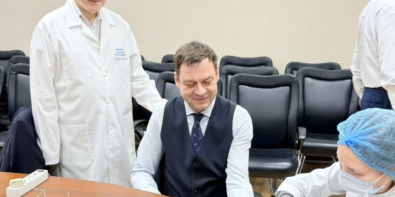 Врио министра здравоохранения Андрей Орлов совместно с заместителями первыми прошли экспресс-обследование уровня здоровья. Всего проверили здоровье 75 специалистов ведомства. Им провели биоимпедансометрию – исследование состава тела, измерение артериального давления, роста, веса, вычислили индекс массы тела, биологического возраста, измерили уровень сахара крови и общего холестерина, провели пульсоксиметрии, спирометрии.