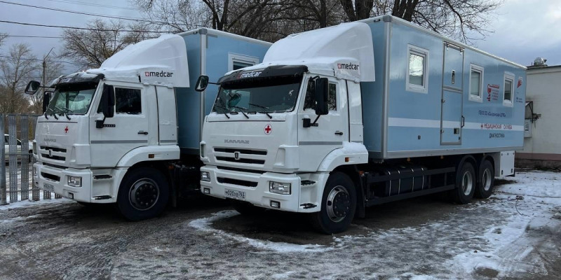 Комплексы на базе автомобиля КАМАЗ оснащены оборудованием для оказания помощи и проведения профилактических осмотров и диспансеризации взрослого и детского населения.
