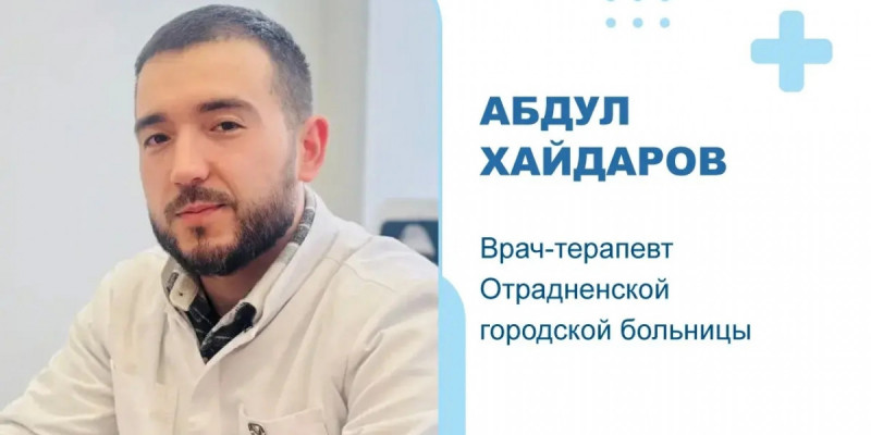 К коллективу Отраднеской городской больницы присоединился участник программы «Земский доктор/Земский фельдшер» молодой специалист - врач-терапевт Абдул Хайдаров. Специалист окончил медицинский колледж им. Н. Ляпиной и медицинский университет "Реавиз". Сейчас Абдул Хайдаров ординатор второго года по специальности анестезиолог-реаниматолог.