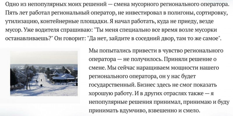 P.S. Высказывание, что вы «безуспешно пытались привести в чувство регионального оператора ЭкоСтройРесурс» вызывает недоумение. Я просил вас о встрече в июне, июле, августе. Лично, через приемную, публично в СМИ. Наша компания никогда не противодействовала решению власти о смене регионального оператора. Но мне и коллективу опытных сотрудников не дали даже возможности передать объективную и аналитическую информацию о состоянии отрасли ТКО.