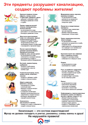 В настоящее время ресурсоснабжающая компания фиксирует резкое увеличение засоров на сетях водоотведения, связанных с нарушением правил эксплуатации канализации. Причем засоры повторные, в одних и тех же домах и подъездах. Каждый раз причина засора – бытовой мусор, тряпки, остатки еды. Сотрудникам компании хорошо понятны и причины проблемы, и как с этой бедой бороться. А вот для большинства жителей многие правила эксплуатации канализации – новость.