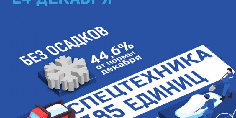 Всего 24 декабря работали 364 дорожных рабочих и 385 единиц спецтехники. За сутки вывезли 368,5 тонн снега.