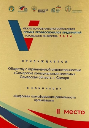 Программа цифровизации «РКС-Самара» признана одной из лучших на V Всероссийской «Межрегиональной многоотраслевой Премии профессионалов предприятий городского хозяйства 2024». Компания заняла второе место в номинации «Цифровая трансформация деятельности организации».
