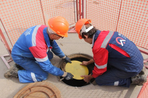 «РКС-Самара» устанавливают устройства для защиты в колодцах. Это дополнительная мера безопасности, чтобы предотвратить падение человека или животного в инженерный люк. Специальные ярко-жёлтые пластины с креплениями придумали и сделали на предприятии. Устройство устанавливается внутри колодца, надёжно фиксируется и по сути является щитом, который задержит человека или животного на поверхности и не даст ему провалиться внутрь люка.
