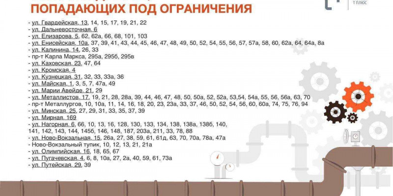 Перечень адресов (объектов) в г.о. Самара, которые попадают в зону планового ремонта теплосетей