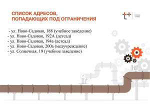 - с 21 мая по 3 июня – для жителей и организаций Советского и Октябрьского районов Самары, в границах улиц Гастелло, Стара-Загора, Советской Армии, Антонова-Овсеенко, Дыбенко, Ставропольской, Карбышева, Кольцевой, Мориса Тореза, Печерской, Гаражной, Блюхера;