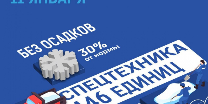 Всего 11 января работали 318 дорожных рабочих и 446 единиц спецтехники. За сутки вывезли 8 184 тонн снега.