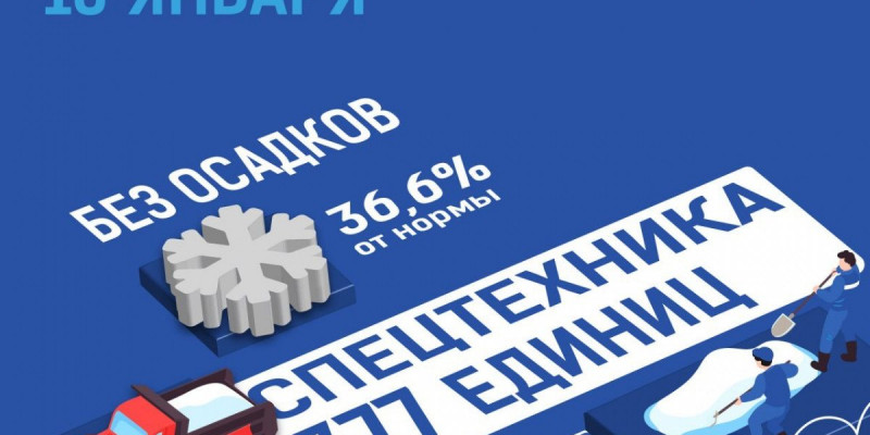 Всего 18 января работали 418 дорожных рабочих и 377 единиц спецтехники. За сутки вывезли 4 118 тонн снега.